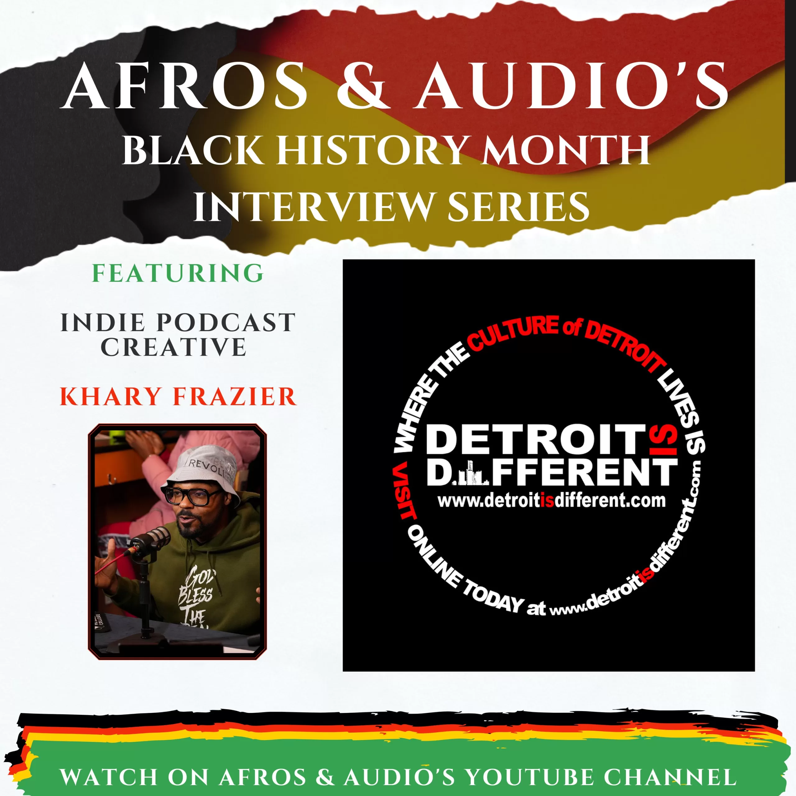 In this episode of Heard!, Afros & Audio’s interview series, host Talib Jasir sits down with Khary Frazier, the creative force behind Detroit Is Different. Launched in 2014, Khary’s podcast began as a platform to amplify diverse voices and stories from Detroit, celebrating the city’s rich culture and history. Over the past decade, it has grown into a multimedia platform, incorporating video content and hosting events like the Collard Green Cookoff, dedicated to community engagement and celebrating local narratives.