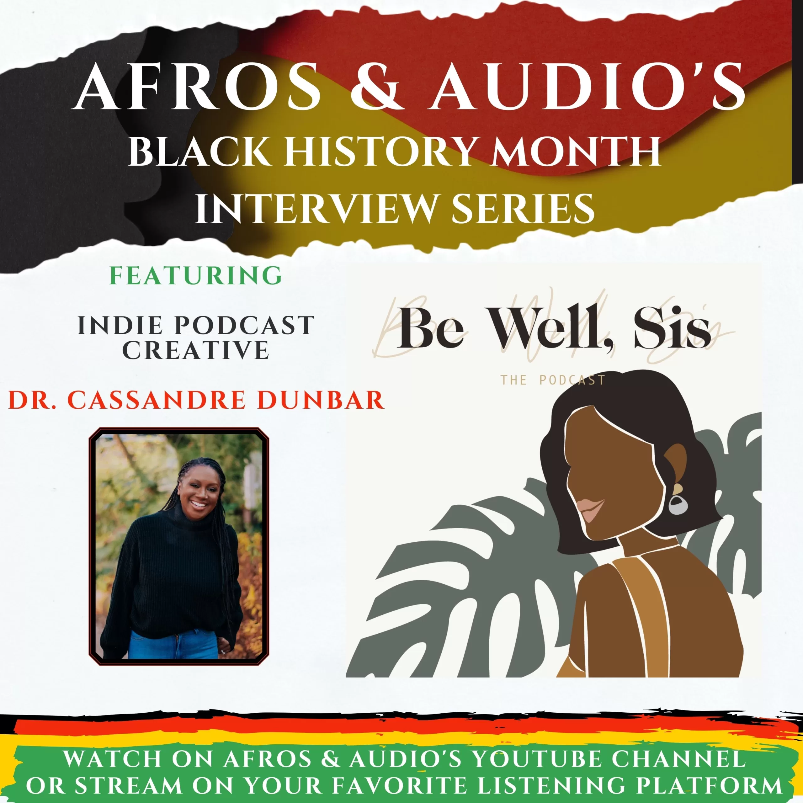 The episode features Talib Jasir, founder and CEO of Afros & Audio, interviewing self-care and wellness advocate, Dr. Cassandre Dunbar.