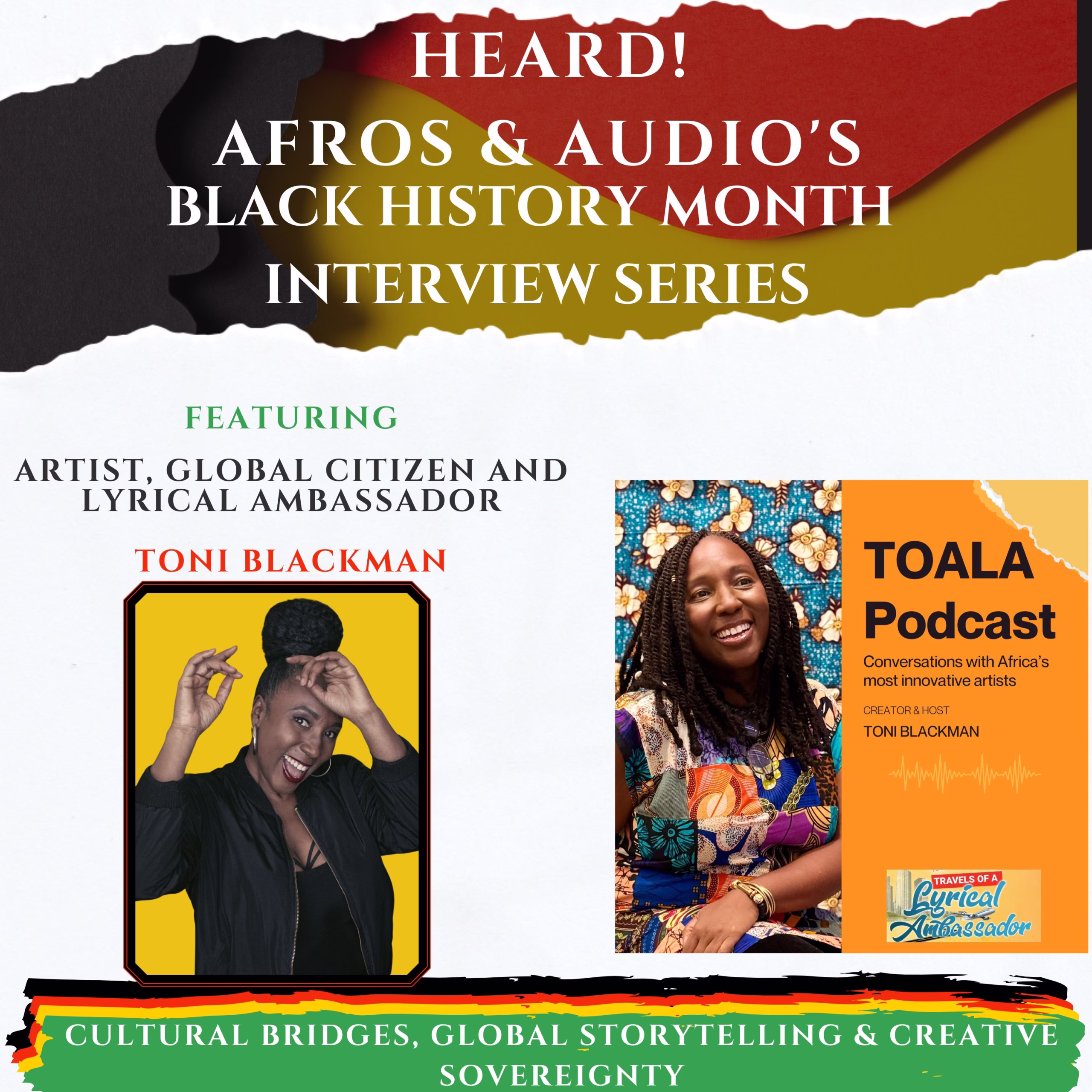 In Episode 20 of the Heard! Afros & Audio Interview Series, Talib Jasir sits with Toni Blackman to explore cultural bridges, global storytelling, and creative sovereignty through music and media.